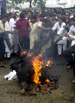Outraged Indians burning an Osama Bin Laden doll. | Friendship